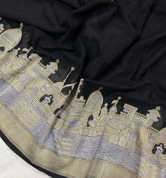 Banarasi Ganga Ghat Semi Georgette Soft Silk Saree
