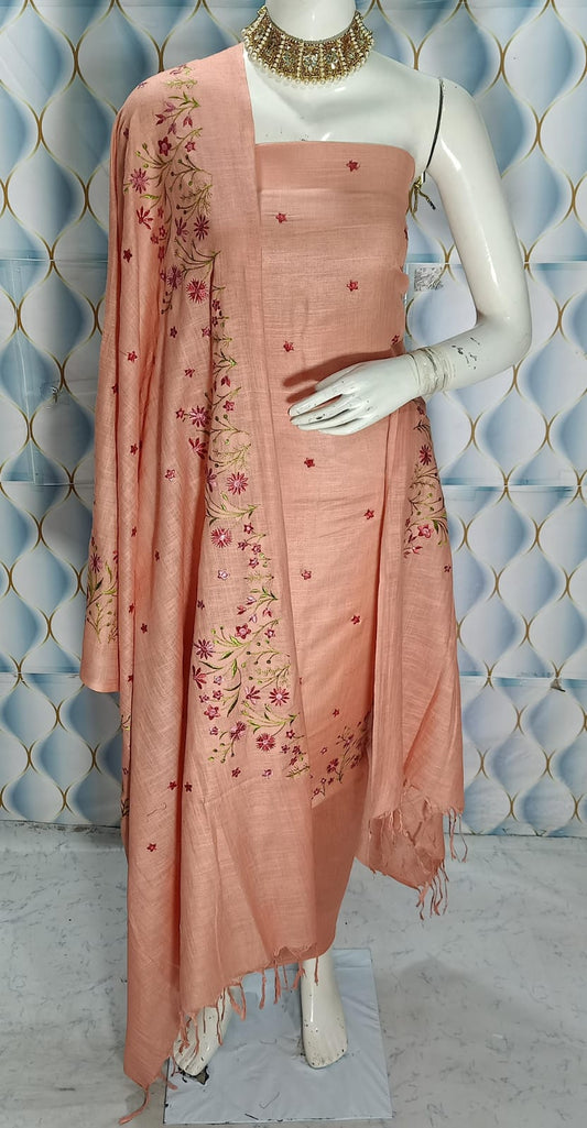 Cotton slub Embroidery Work Unstitched Suit