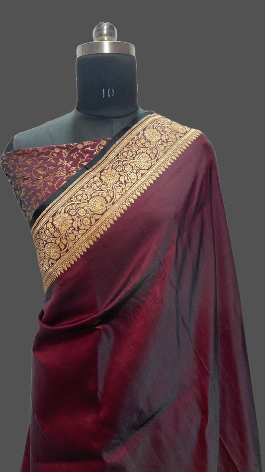 Experience the captivating allure of Banarasi Katan Silk sarees, a true embodiment of grace, elegance, and luxury. These sarees, made from pure silk, possess a lustrous sheen and a rich texture that beautifully drapes, creating a mesmerising silhouette.Our collection of Katan Silk sarees showcases the timeless charm and sophistication of this exquisite fabric. Each saree is meticulously woven with precision and care, reflecting the rich heritage of skilled craftsmanship. With intricate motifs and delicate patterns, every design narrates a story of artistry and tradition.