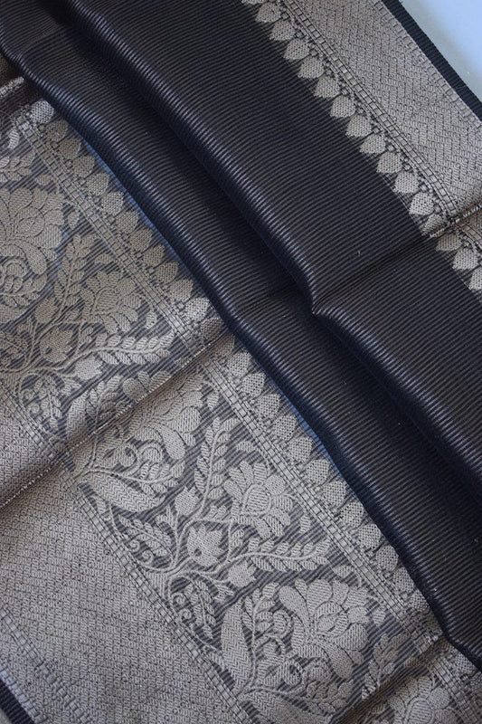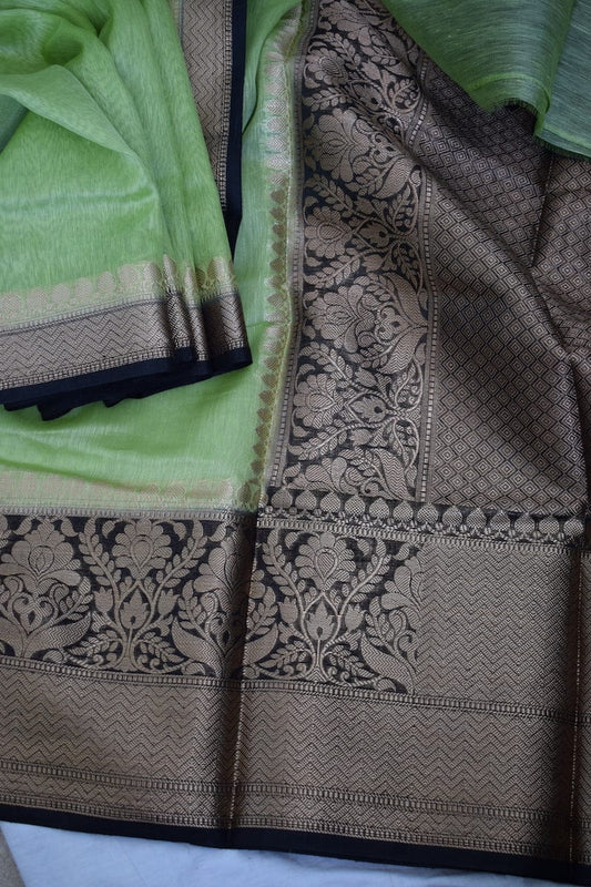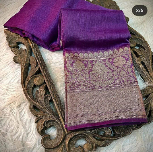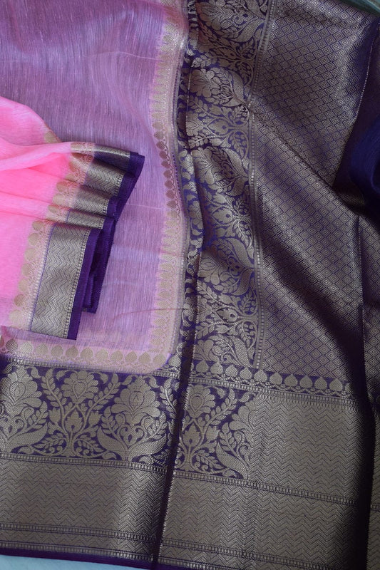 Pure Banarasi Linen Silk Border Saree With Blouse