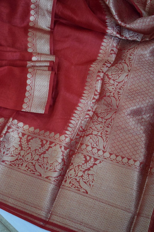 The Banarasi Linen saree is a type of saree that combines the elegance of Banarasi silk with the comfort and breathability of linen fabric. It is a popular choice among women who appreciate traditional craftsmanship and desire a saree that is both luxurious and comfortable to wear.