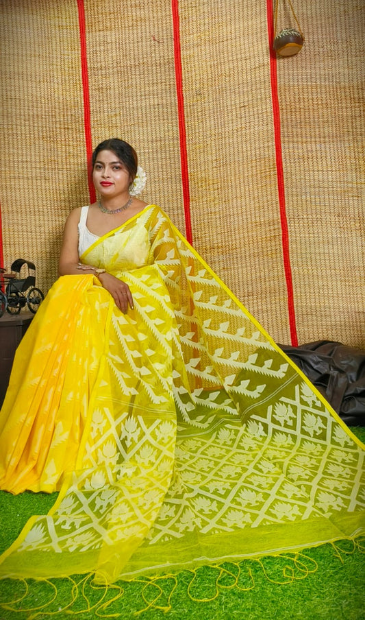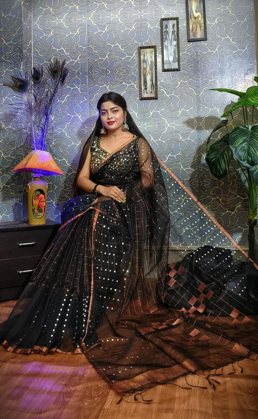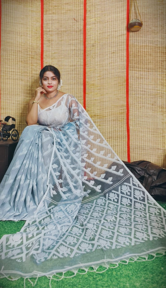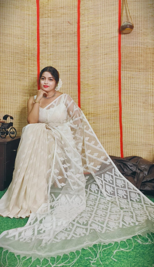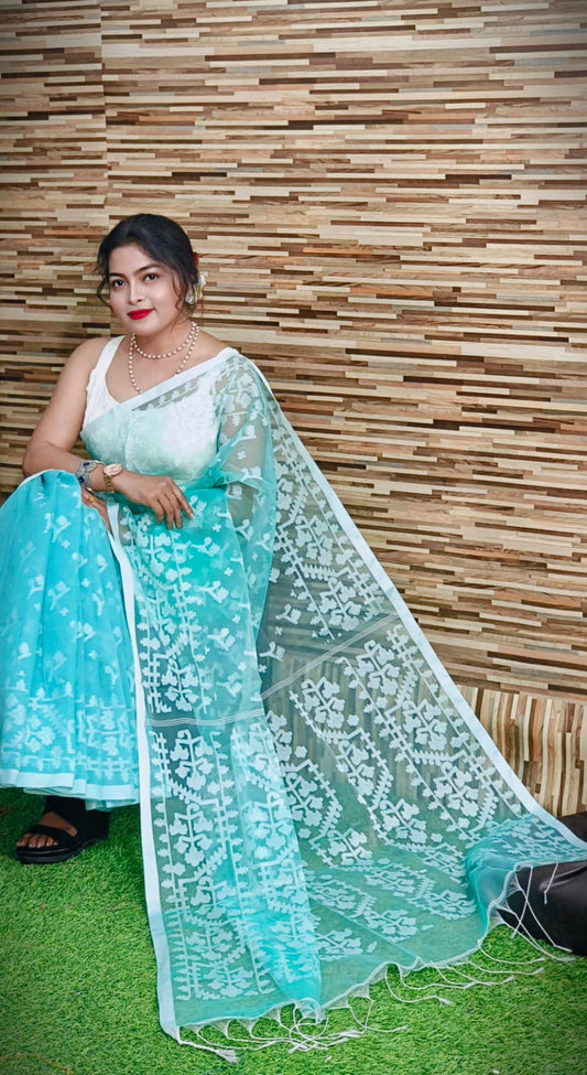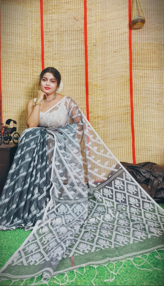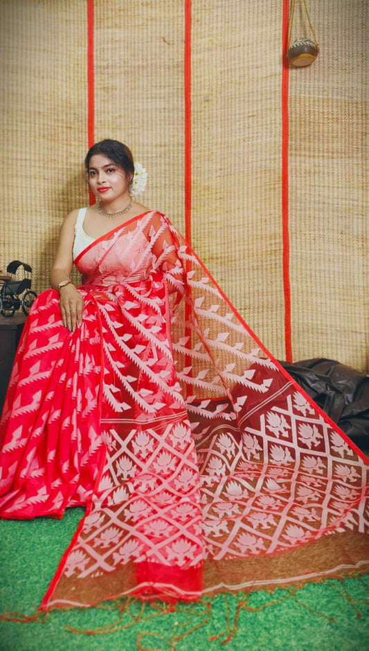 Jamdani woven sarees are a testament to the exquisite artistry and craftsmanship of Bangladesh. Originating from the historic city of Dhaka, Jamdani sarees are handwoven using a time-honored technique that involves the creation of intricate motifs on fine cotton or silk fabric.
