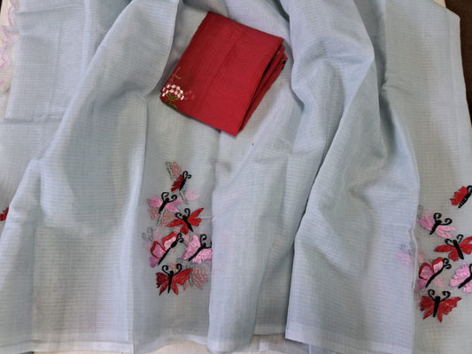Pure Kota Doria Embroidery Saree with Blouse