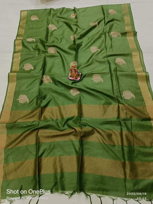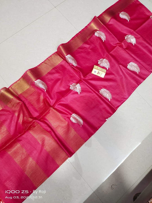 Pure Hand woven Banarasi Tussar Moonga Silk Sarees With Blouse Smooth & Soft Fabric ( length- 6.3 meter )