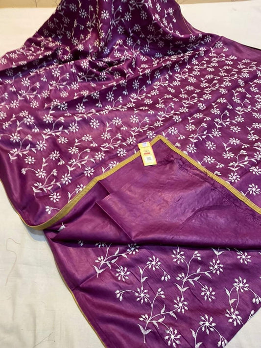 Pure Hand woven Banarasi Tussar Moonga Silk Sarees With Embroidery work