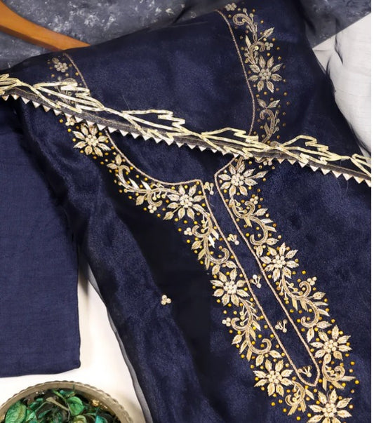 Organza Hand Work Unstitched Suit