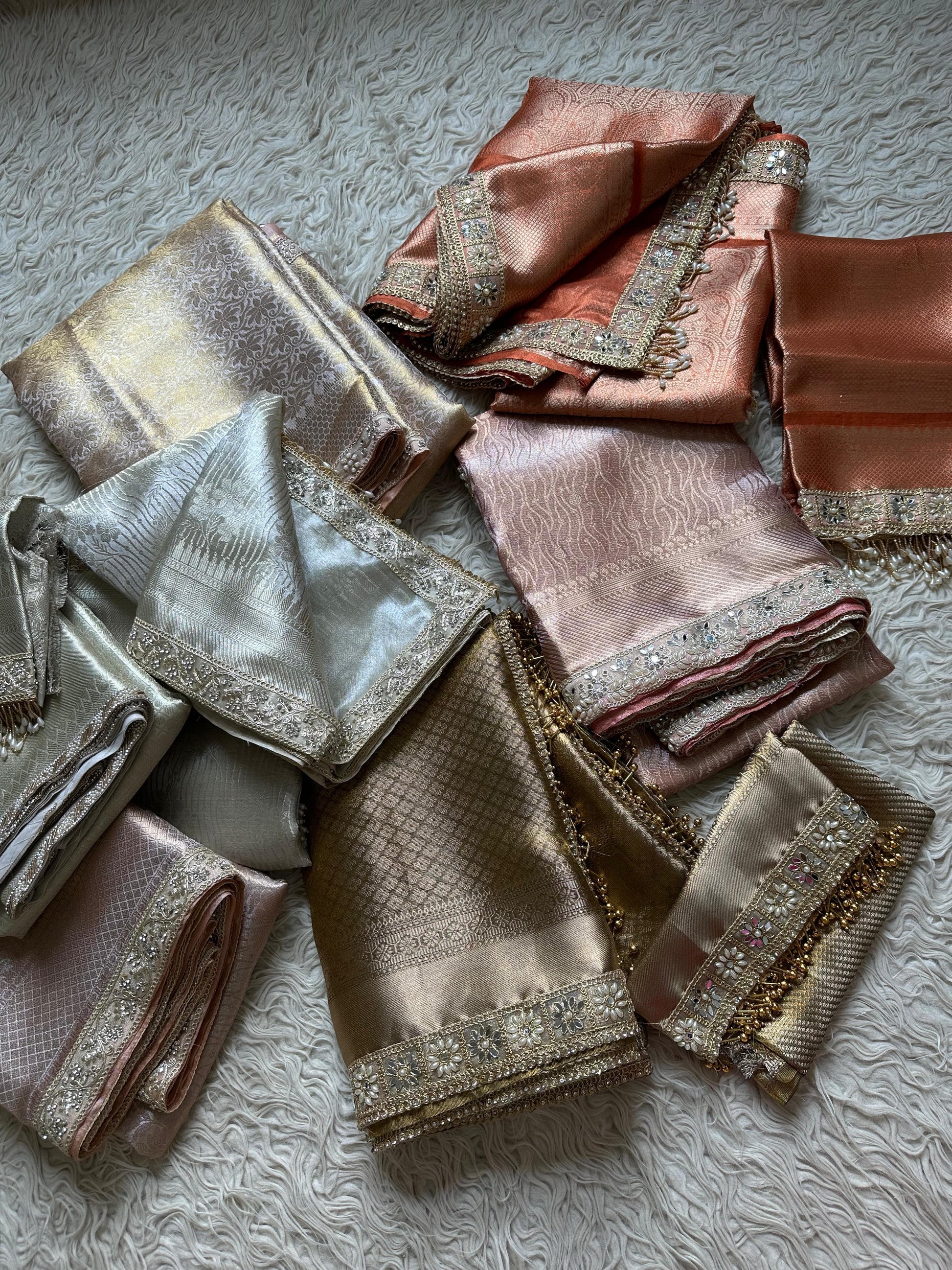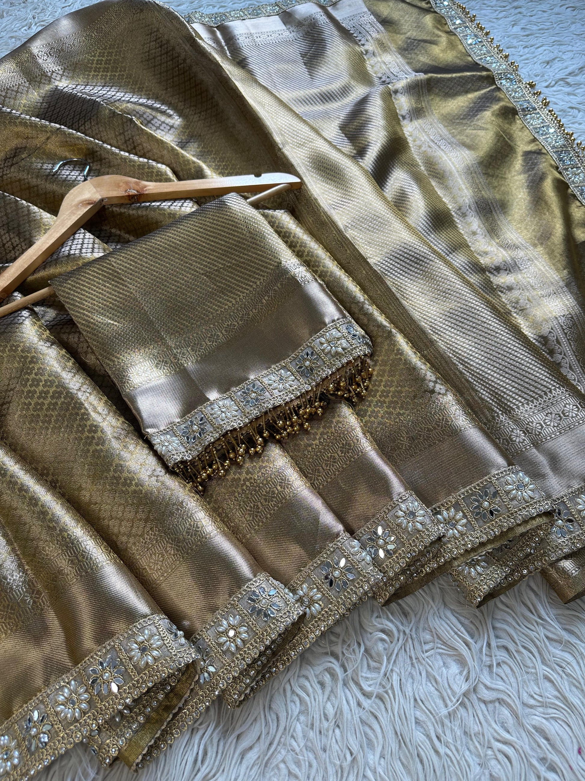 Banarasi Kanjivaram katan Tissue Silk Saree With Beautiful lace border