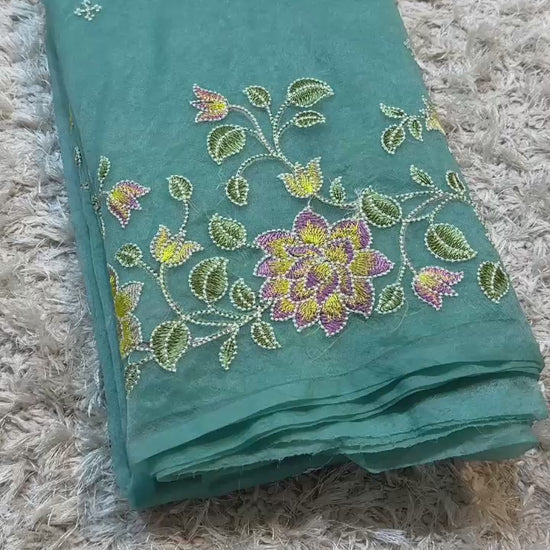 Banarasi Soft Kora Organza Embroidery Work Saree