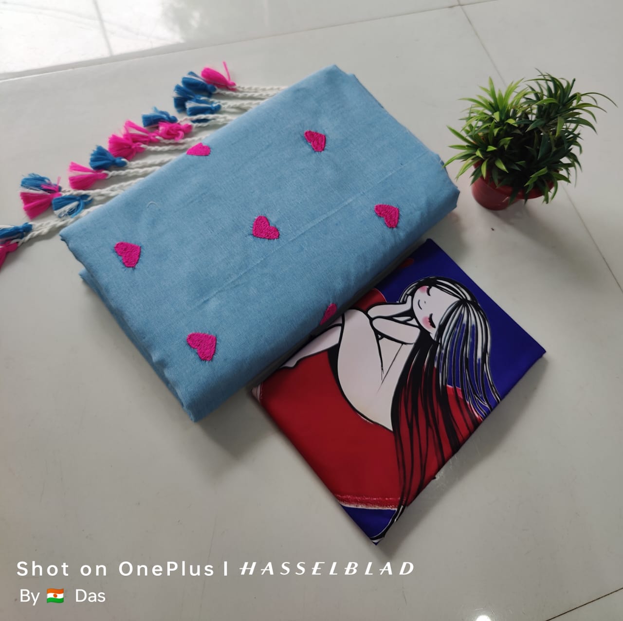 Beautiful Love Embroidery Khaddi Cotton Saree