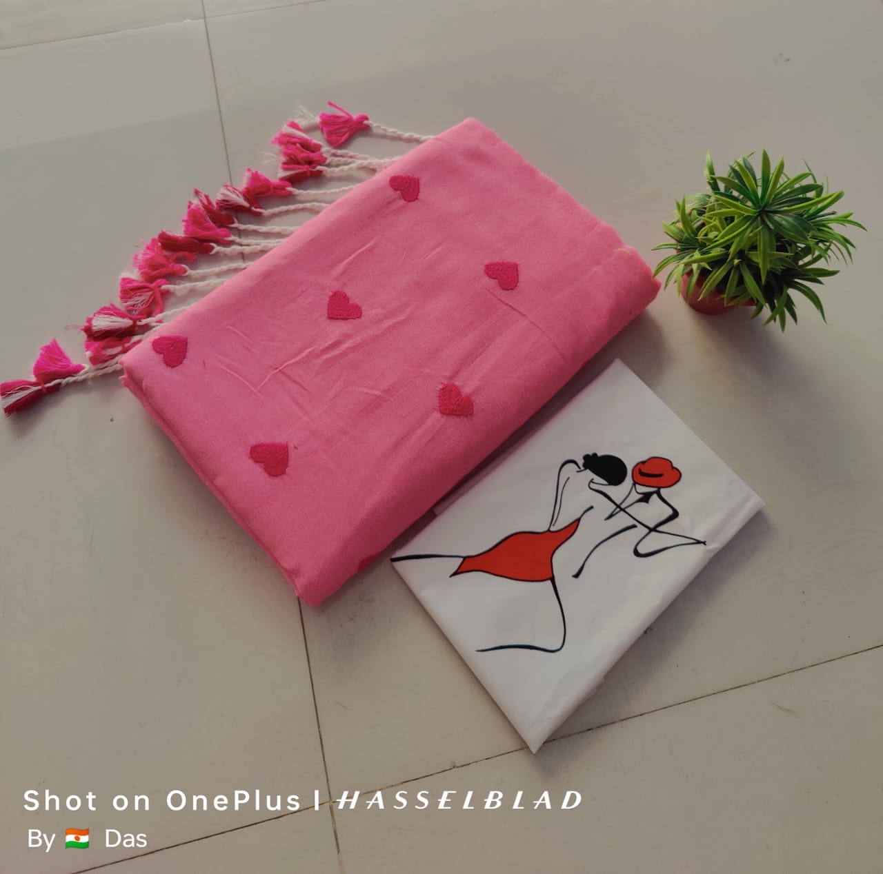 Beautiful Love Embroidery Khaddi Cotton Saree