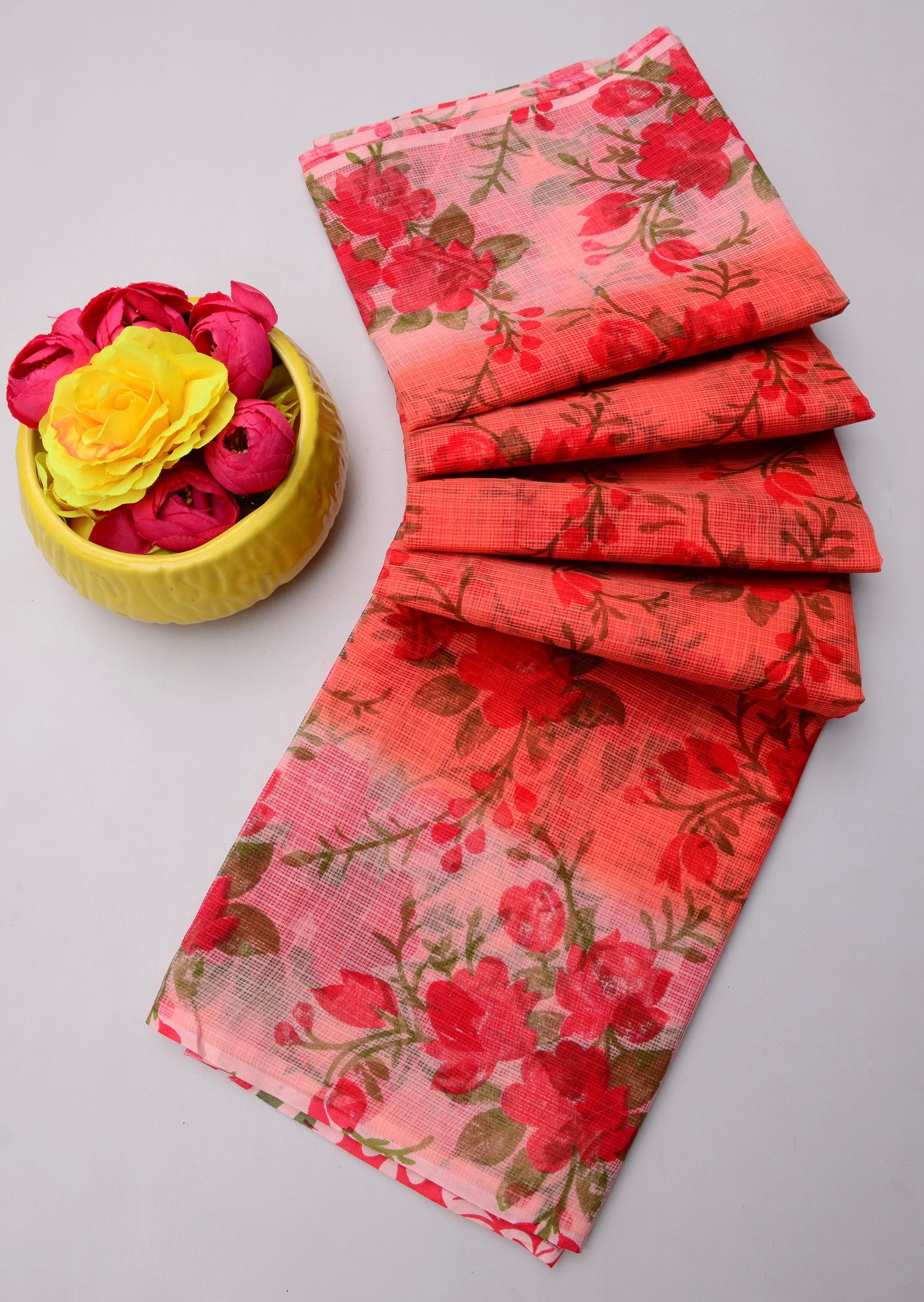 Pure Cotton Kota Doria Kalam Kari Floral Print Sarees