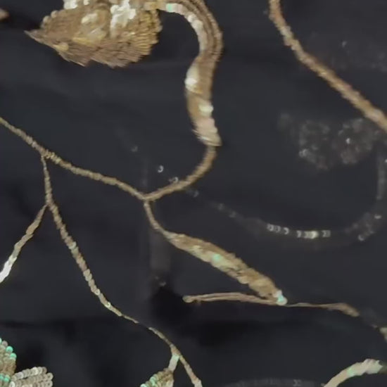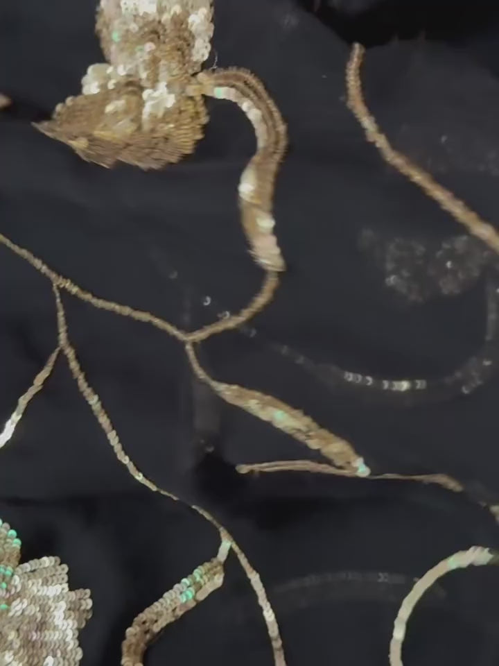 - Crafted with pure chiffon fabric, this beautiful Jaipuri saree features intricate sequence Jaal work that adds a touch of elegance to your style. With its lightweight and delicate texture, this saree is perfect for special occasions and will surely make you stand out.