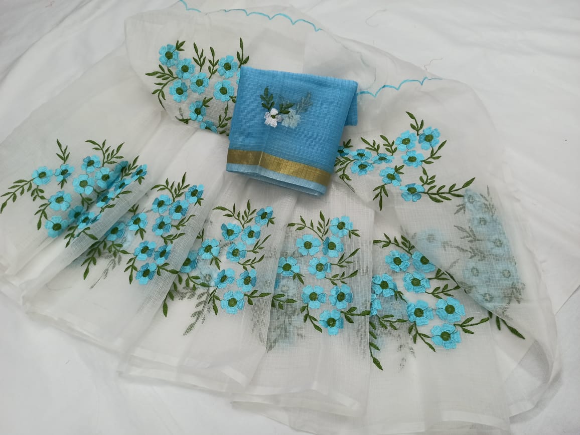 Pure Kota-Doria Saree with Blouse and Embroidery Work