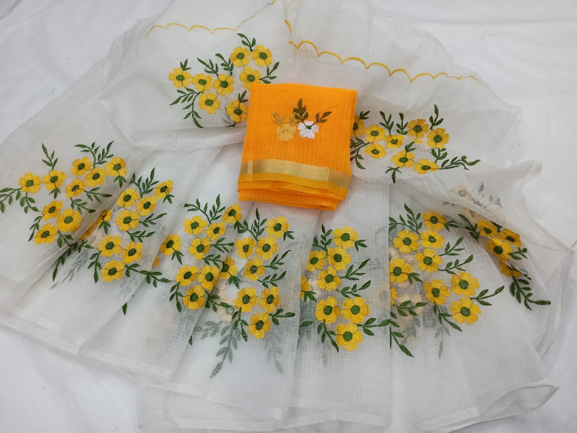 Pure Kota-Doria Saree with Blouse and Embroidery Work