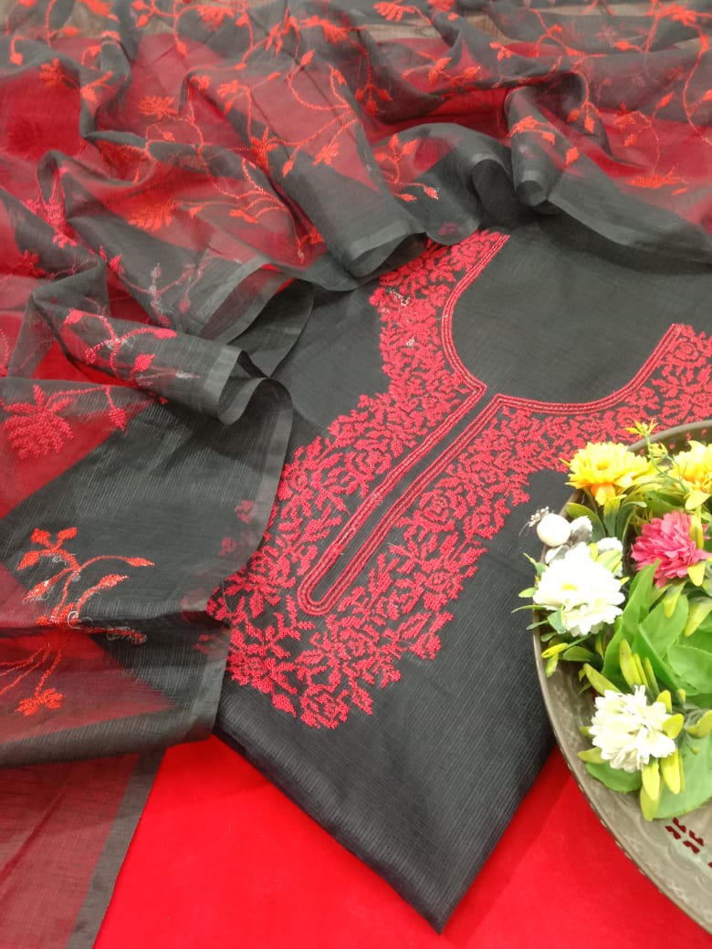Pure Kota-Doria Unstitched Suit with Embroidery Work