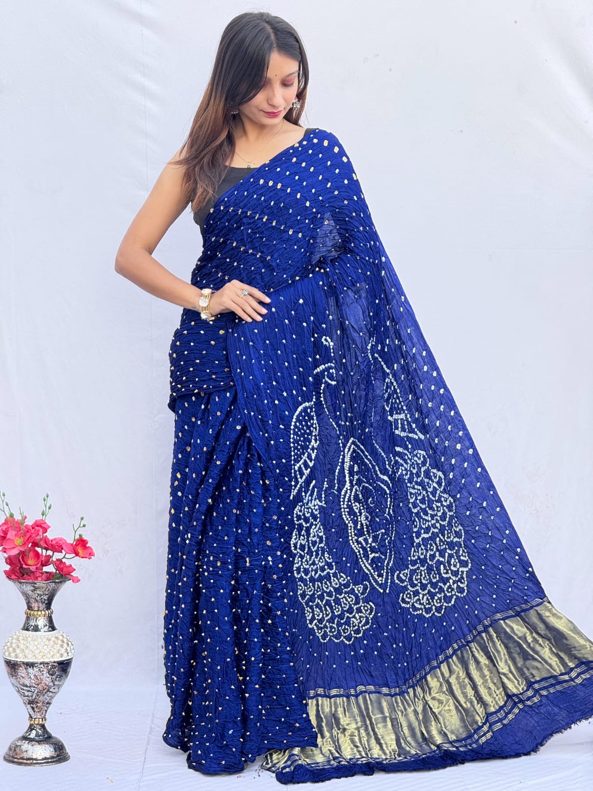 This Modal Silk Azrakh handblock saree from Barmar is made from a lightweight fabric, perfect for summer. The azrakh modal silk ensures breathability and a soft and luxurious feel. The saree comes with a matching blouse piece, giving it a complete and classy look.