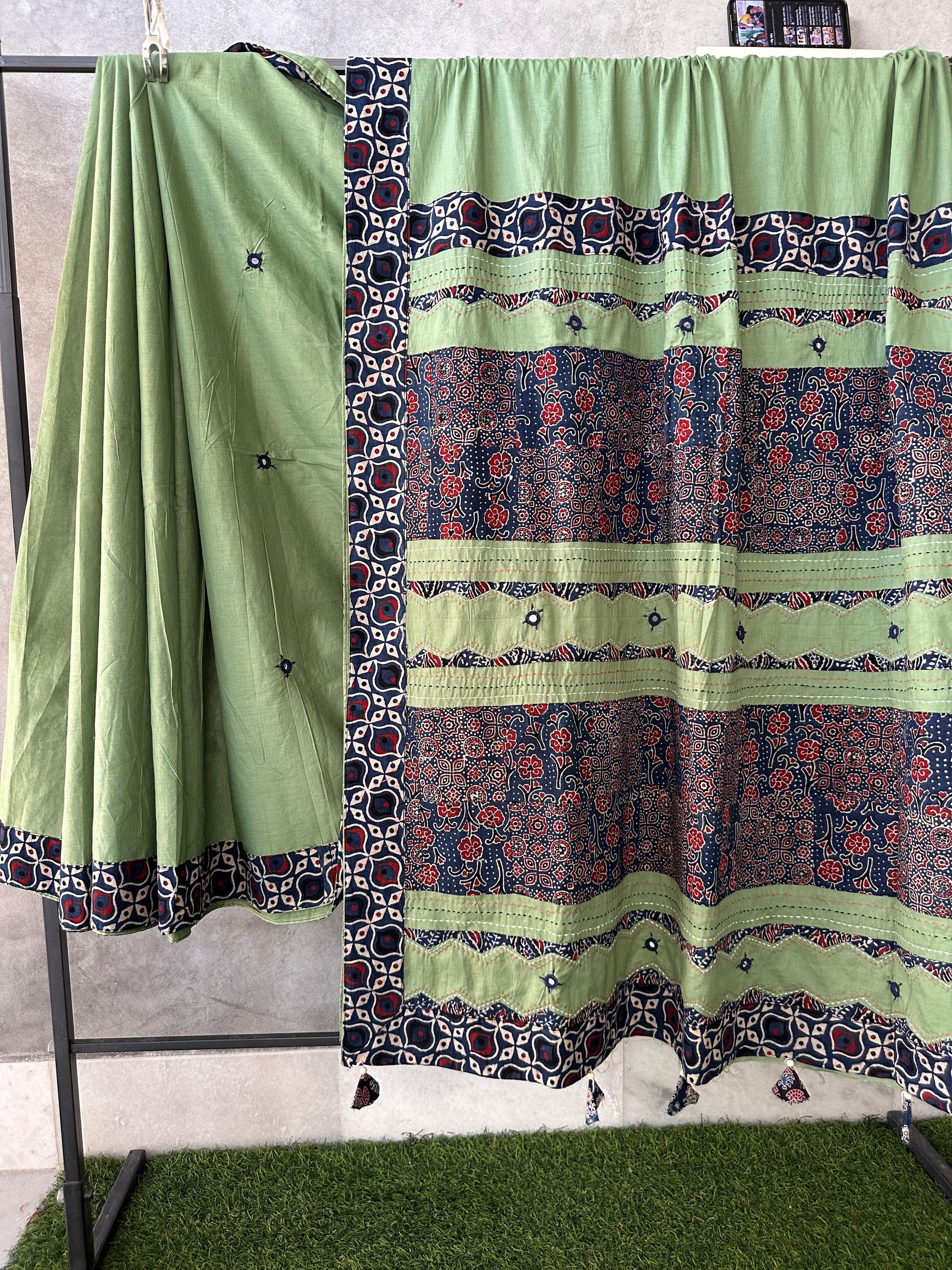 Pure Mul Cotton Saree With Ajrakh Mirror Work
