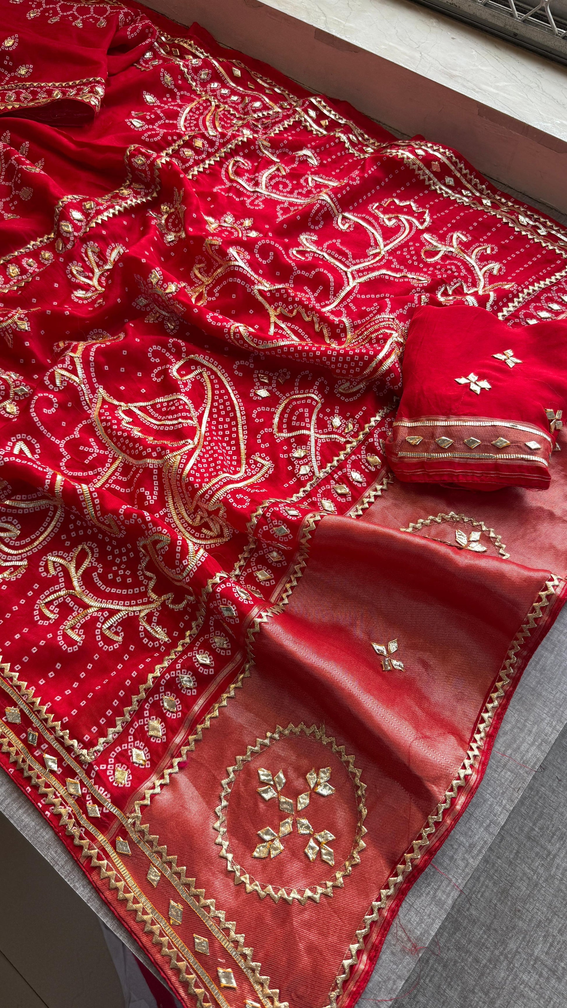 Pure Munga Silk Gotta Patti Work Saree With Blouse